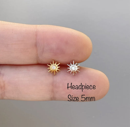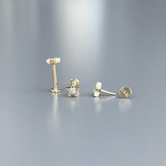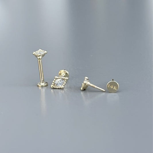 14k Solid Gold CZ Diamond Shape Boho Internally Threaded Labret
