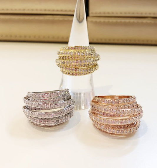 Multi-layered Cocktail Ring, High Quality Cubic Zirconia Statement Ring: Gold, Rosegold and Silver
