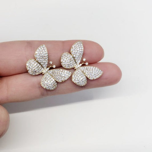 Gold Butterfly Earrings, Full Pave Gold Butterfly Earrings