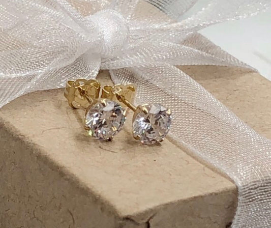 14K Solid Gold Tiny Clear CZ Stud Earrings, Cubic size 2mm/3mm/4mm/5mm - 14K Solid Gold