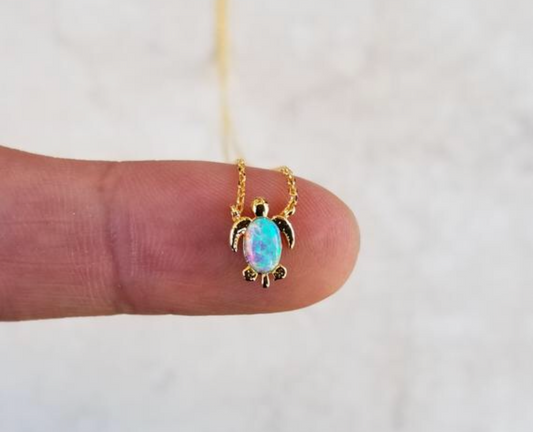 Sea Turtle Necklace, Sea Turtle Opal Necklace, Dainty Sea Turtle Necklace