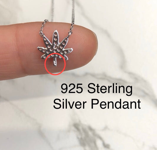 Cannabis Leaf Necklace, Dainty cannabis leaf with cubic zirconia necklace, Marihuana Necklace