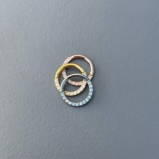 Implant Grade Titanium Hinged Segment Hoop Rings with Opal Paved Front, Septum, Daith clicker
