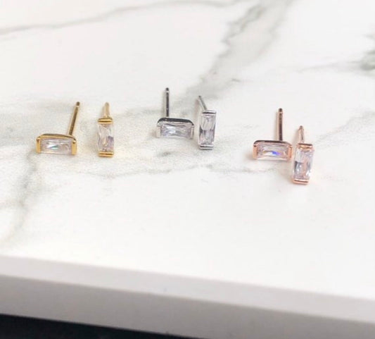 New-Tiny CZ Baguette Stud Earrings, Minimalist Earring Studs, Teeny tiny square studs, Emerald Cut CZ Diamond Earrings, Diamond Bar